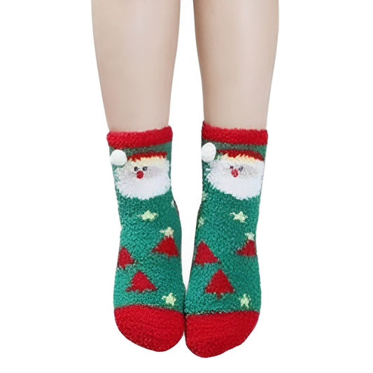 12 Pares Calcetines Navideños Afelpados Con Figuras 3D